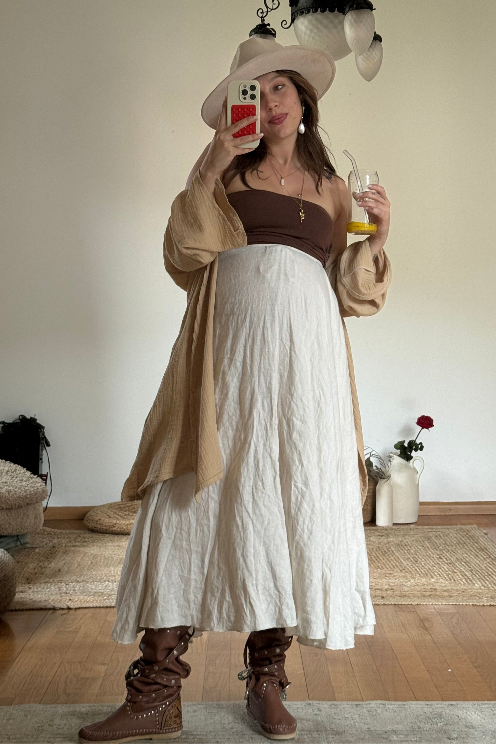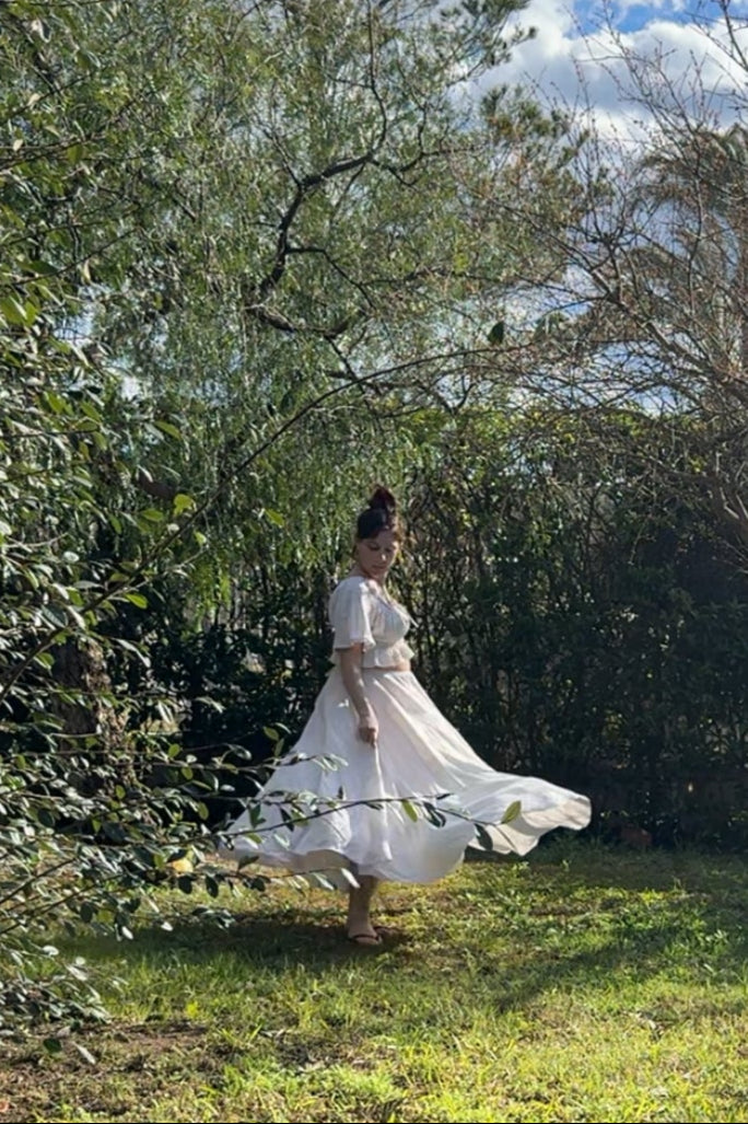 Mediterranea nasce dal lino puro, naturale come la terra da cui prende il nome. È una gonna lunga, fluida, ampia, pensata per seguire i movimenti del corpo e accompagnare ogni passo con grazia.