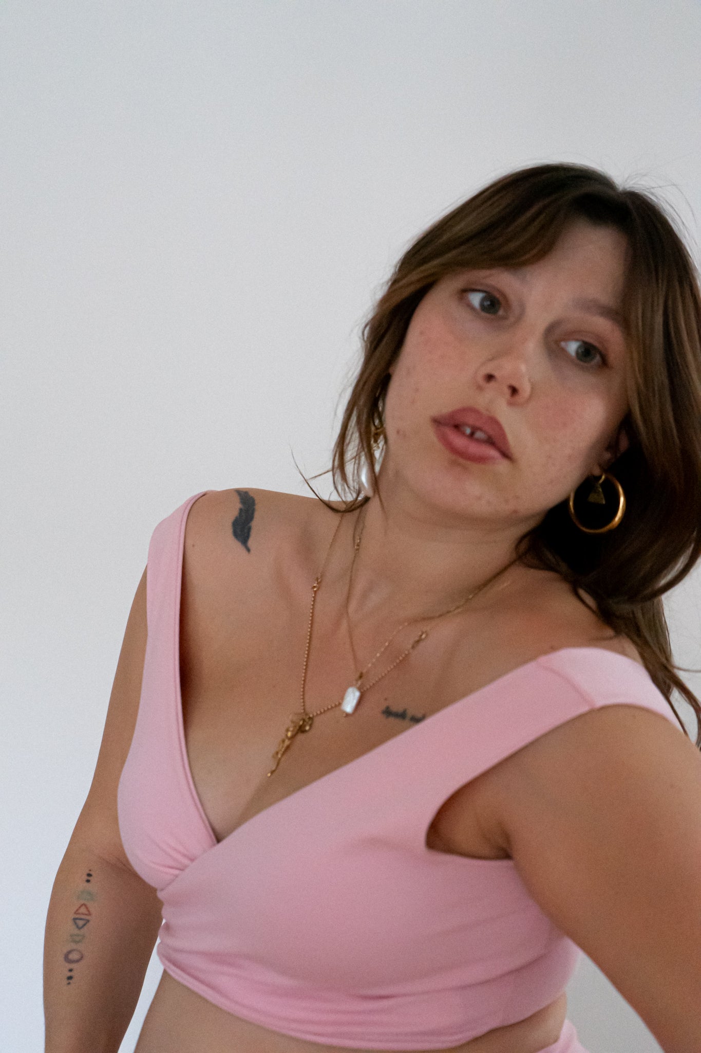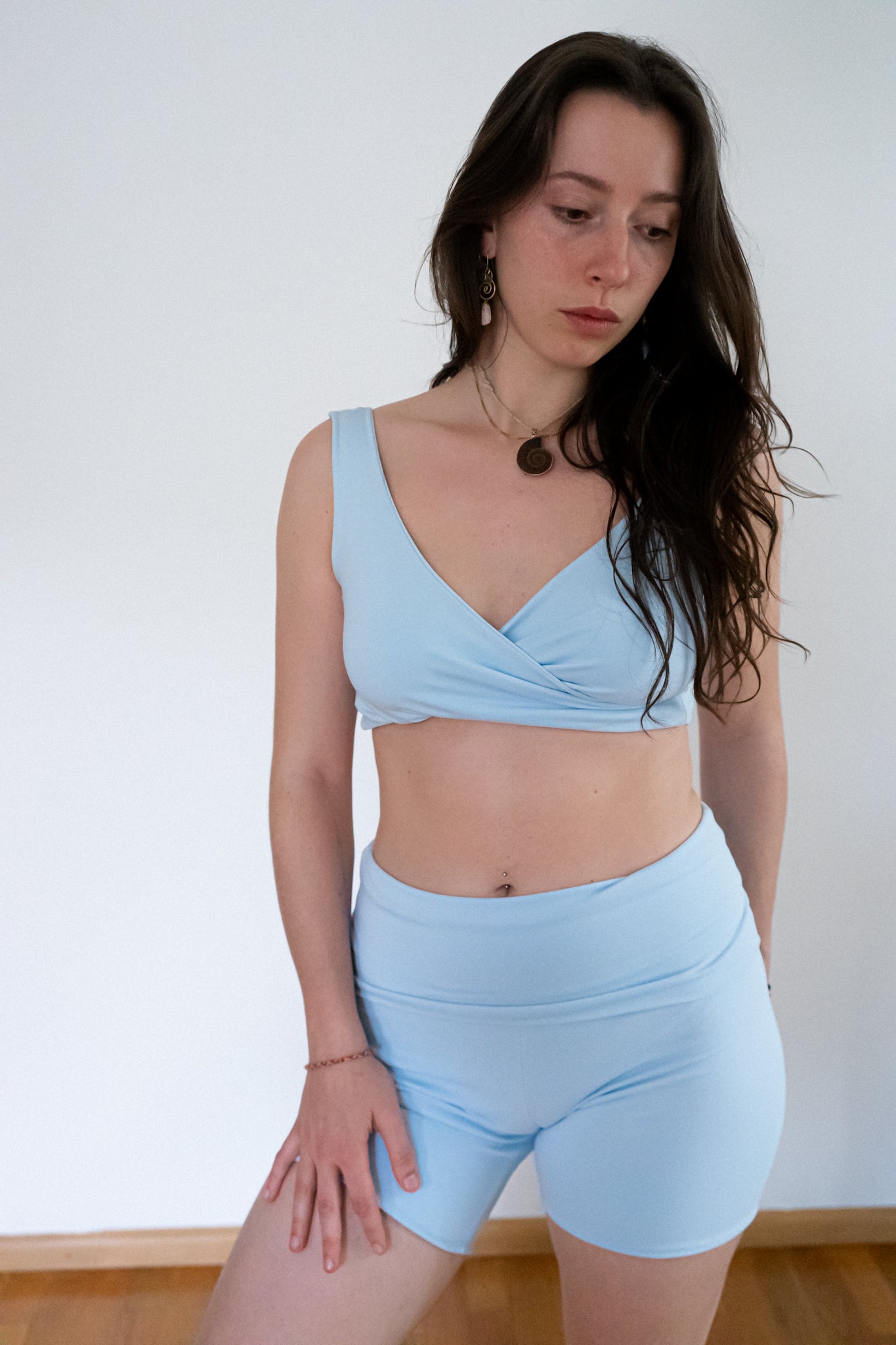 Morbido sostegno, libertà in movimento. Il Yoga Top Cuore abbraccia il seno con dolce fermezza, offrendo comfort e bellezza in ogni gesto della giornata. Dalla pratica dello yoga o del pilates, alla danza libera e le camminate in montagna, fino ai pomeriggi soleggiati al lago, accompagna il corpo come una seconda pelle. Ha un doppio strato per coprenza e sostegno di ogni tipo di seno, abbinabile perfettamente con gli altri capi di Amar.