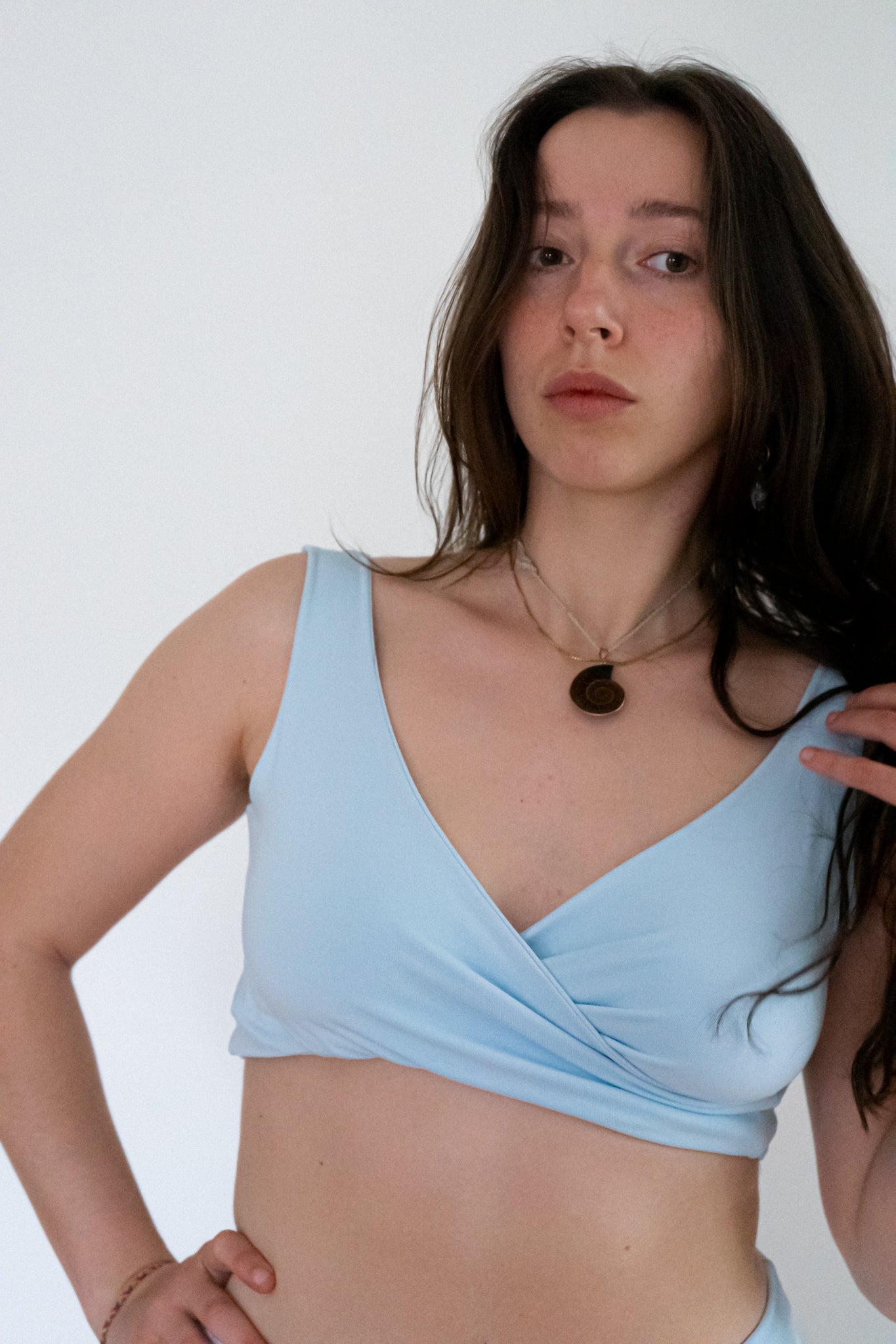 - Top cropped con scollo a cuore e design a portafoglio incrociato, che dona dolcezza e sensualità allo stesso tempo